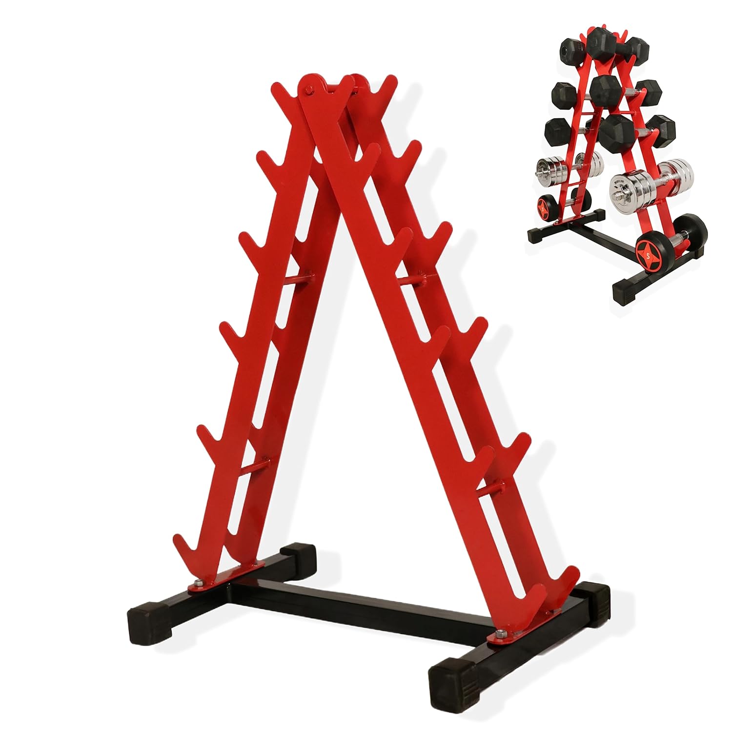 Prevents dumbbells from rolling around, minimizing damage to floors and weights