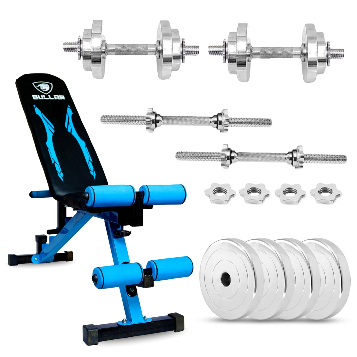 Adjustable Steel Dumbbell Set Combo with Multipurpose Bench, Weight Plates & Star Nut Dumbbell Rods