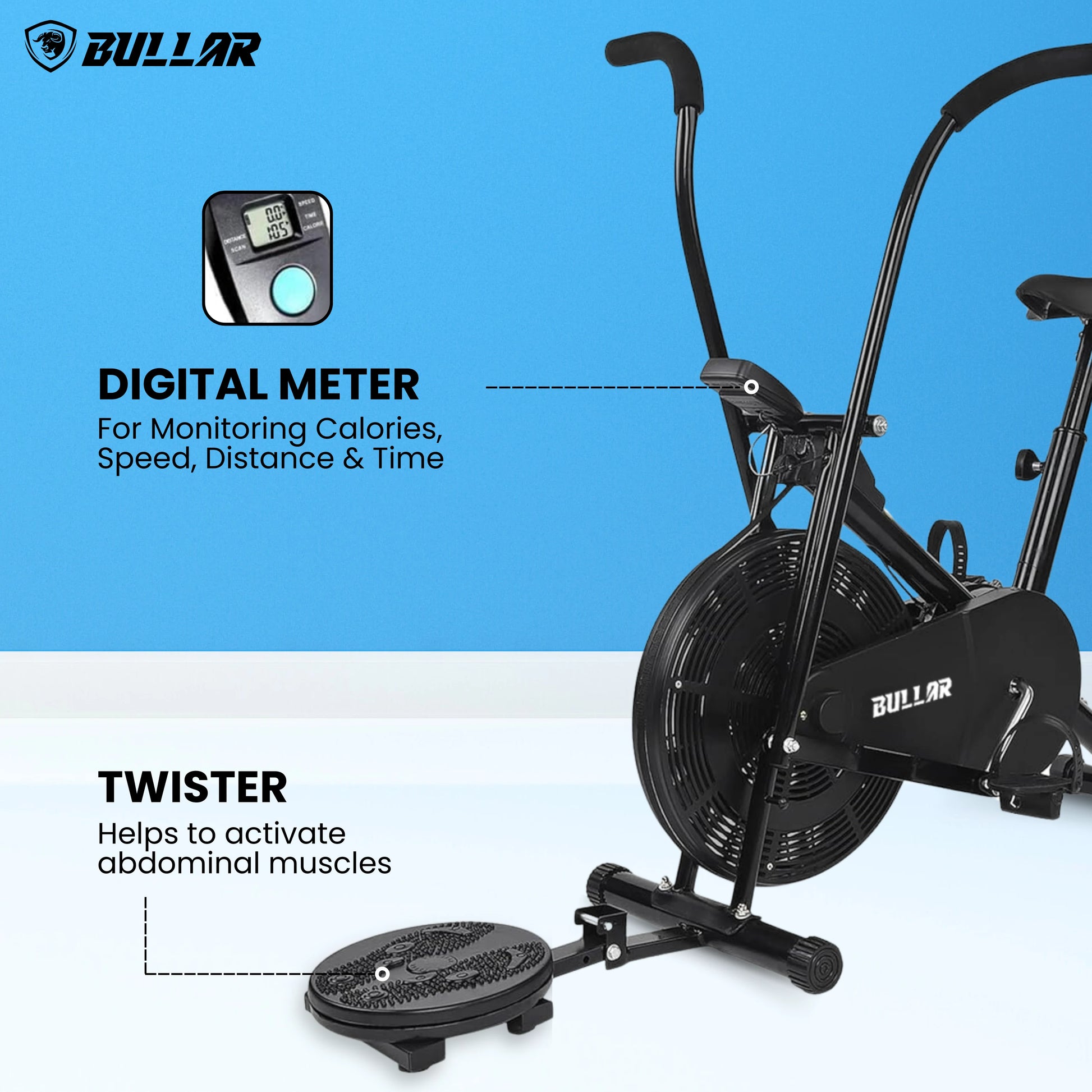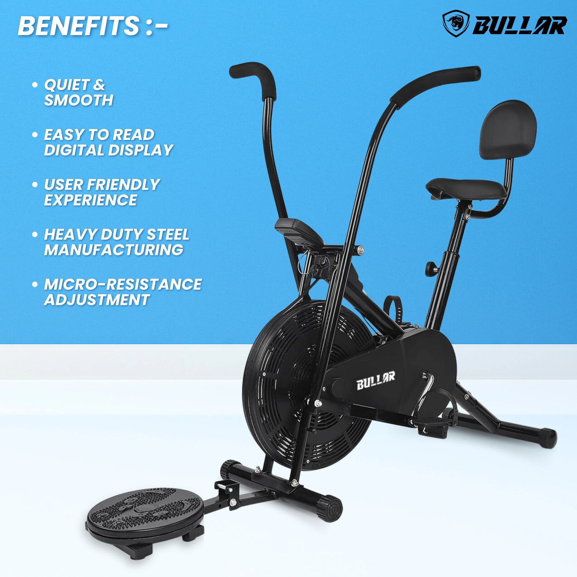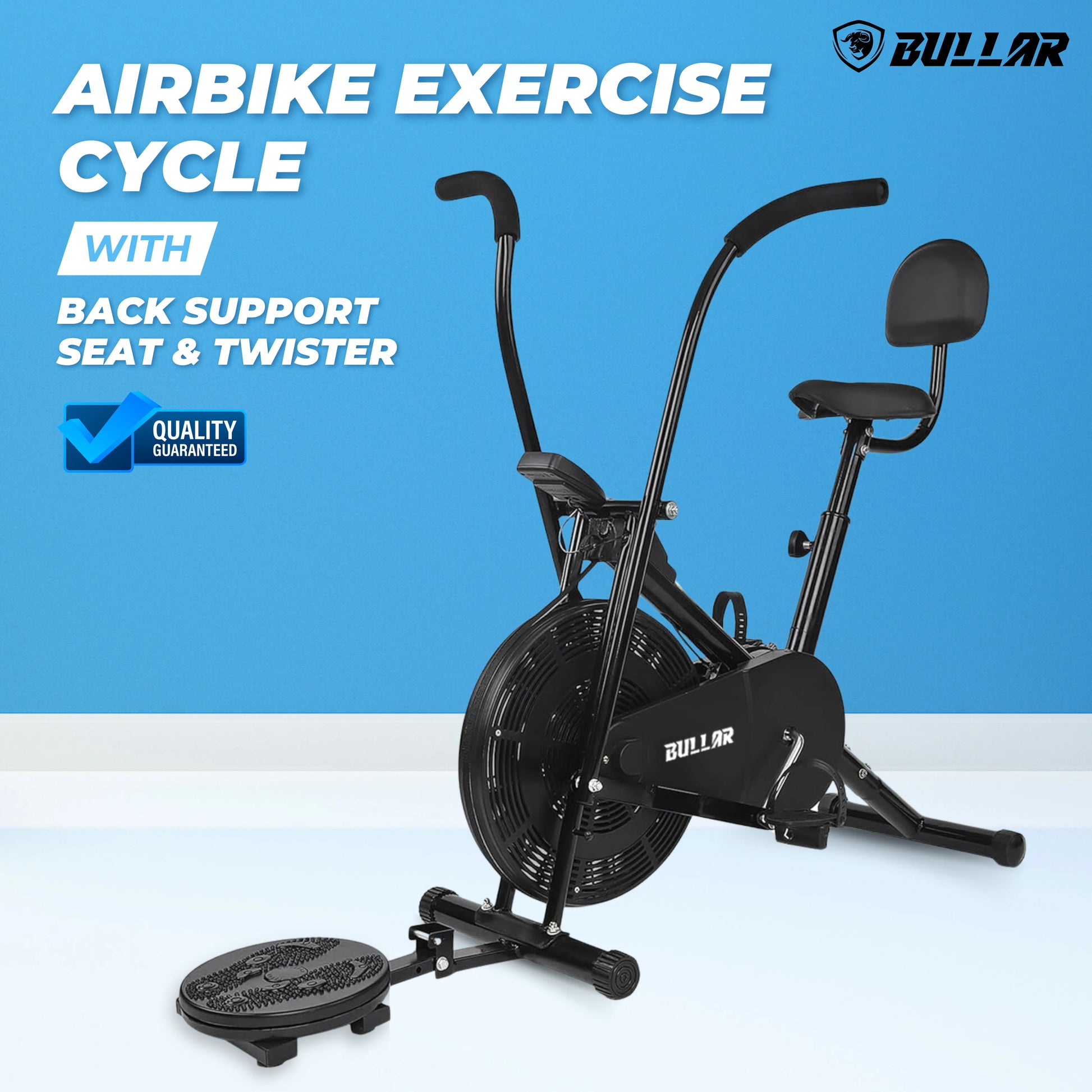 Air Bike Exercise Cycle with Adjustable Cushioned Seat, Moving Handles, Backrest, Twister - All Models
