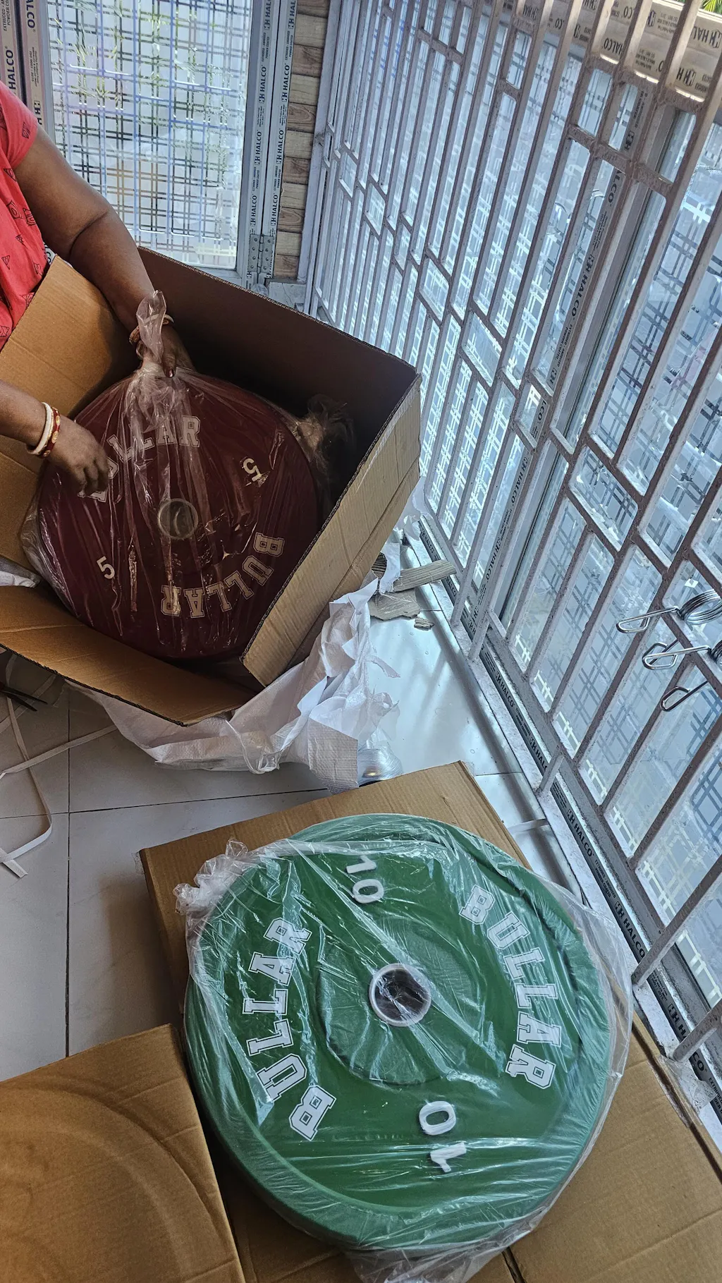 Colored Bumper Plates Home Gym Set with Olympic Barbell