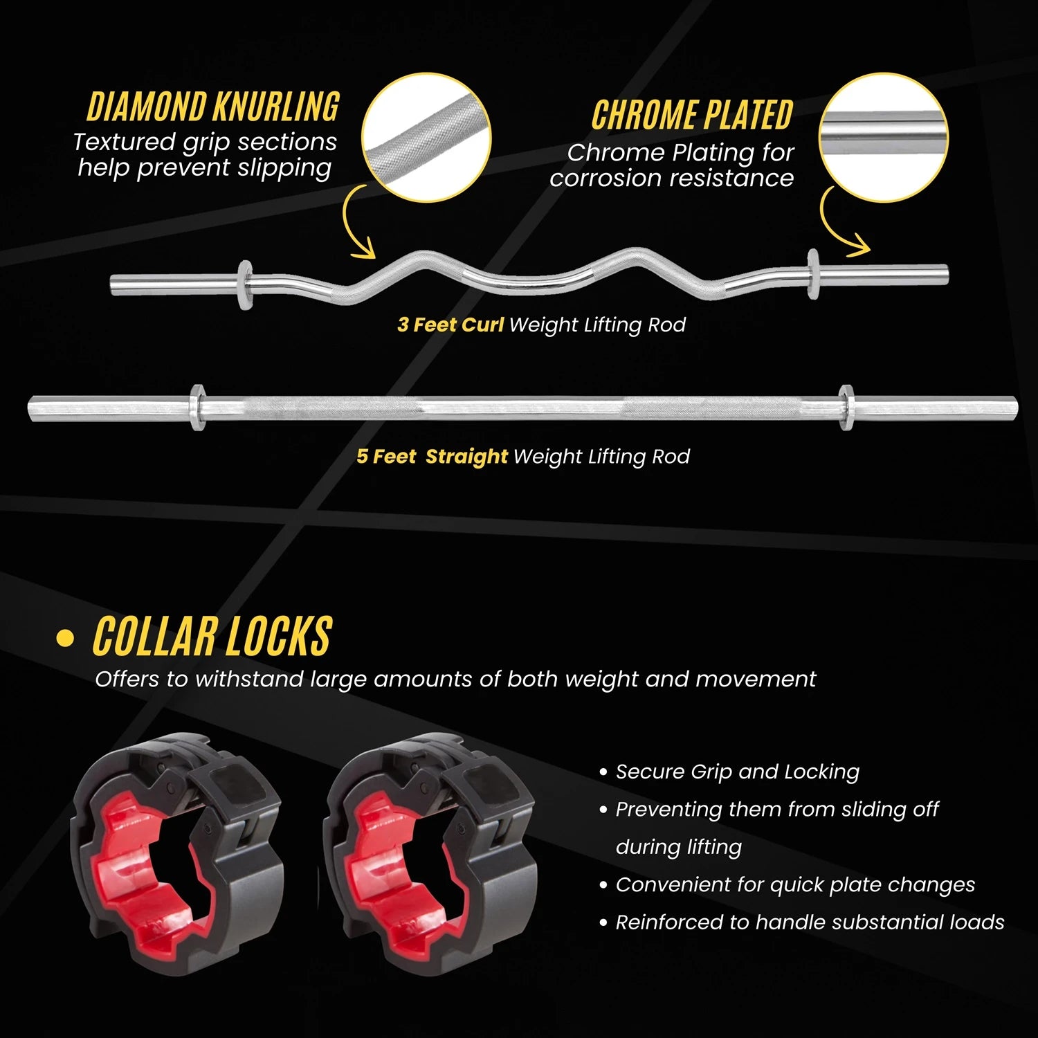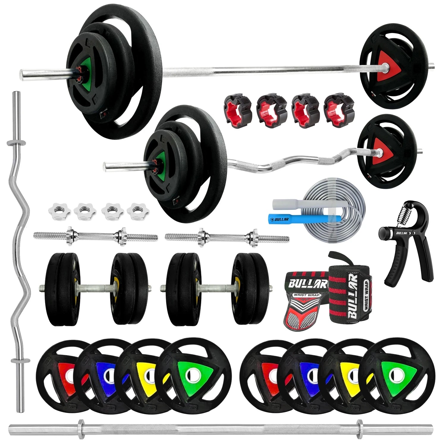 Professional 3-Cut Home Gym Set with 15" Star Nut Dumbbell Rods