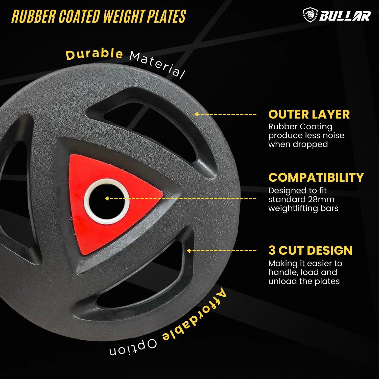 The thick and durable rubber coating increases durability, protects flooring, enhances appearance, is easy to clean and reduces noise