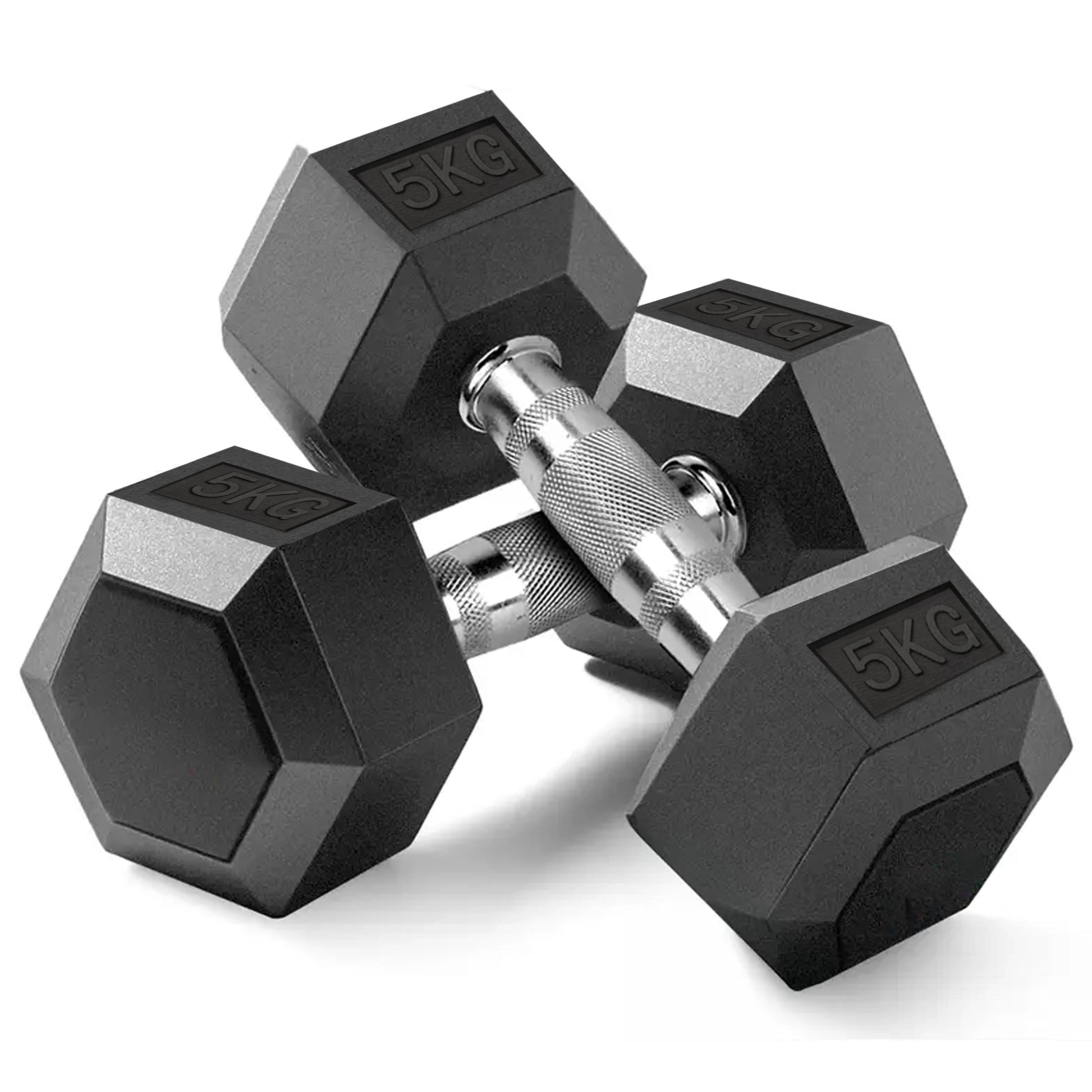 Rubber Coated Fixed Hex Dumbbells Set for Home Gym