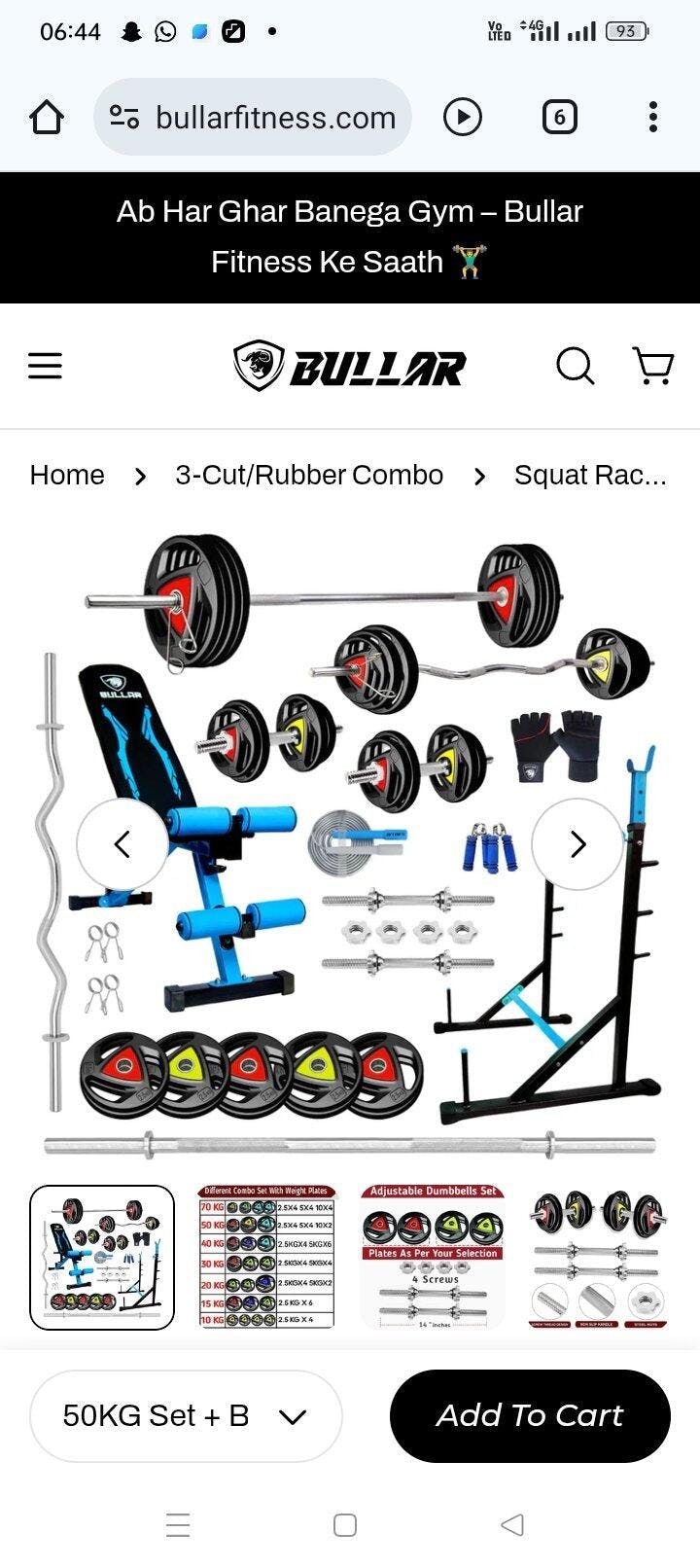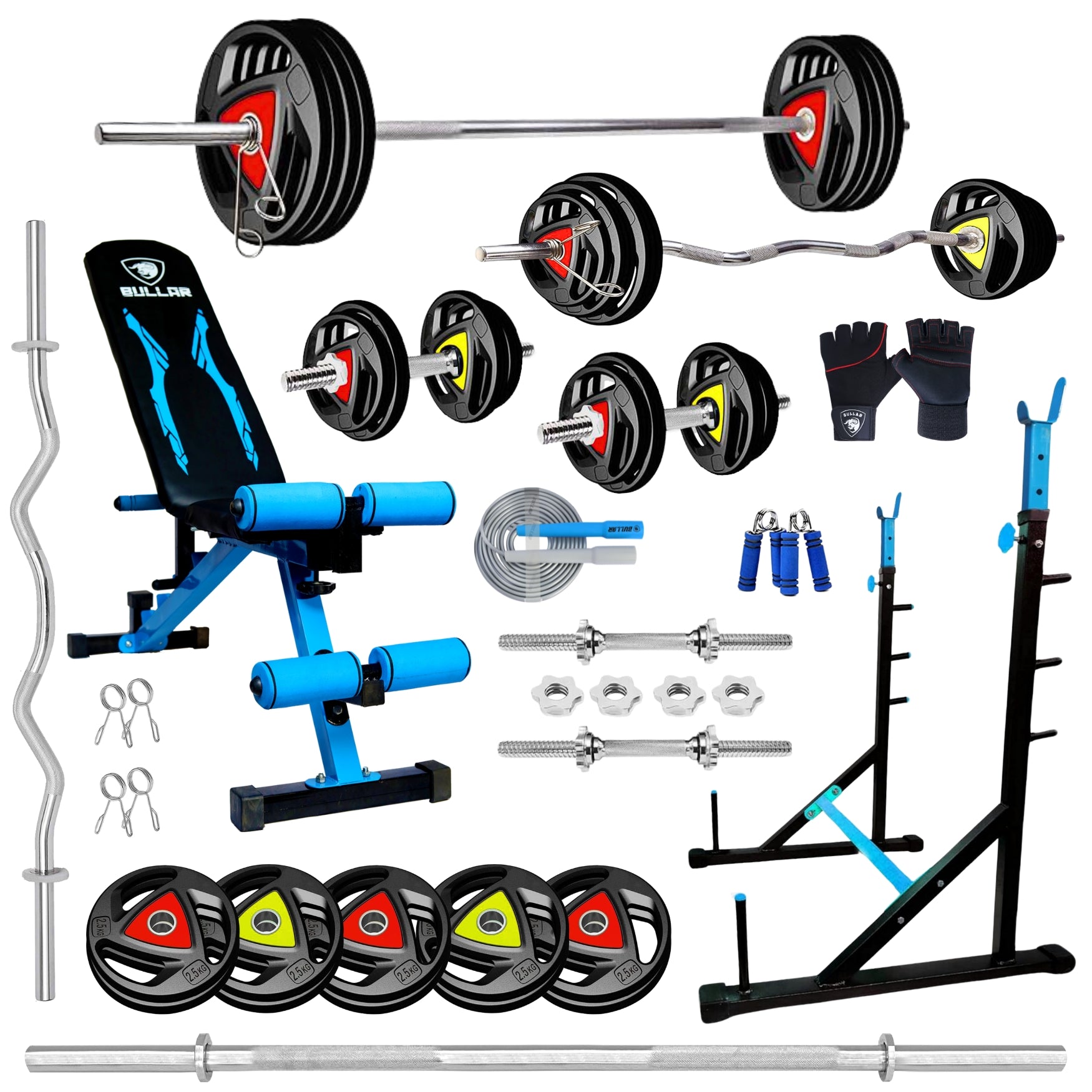Squat Rack + Adjustable Bench Combo with 3-Cut Rubber Coated Weight Plates & Dumbbell Rods