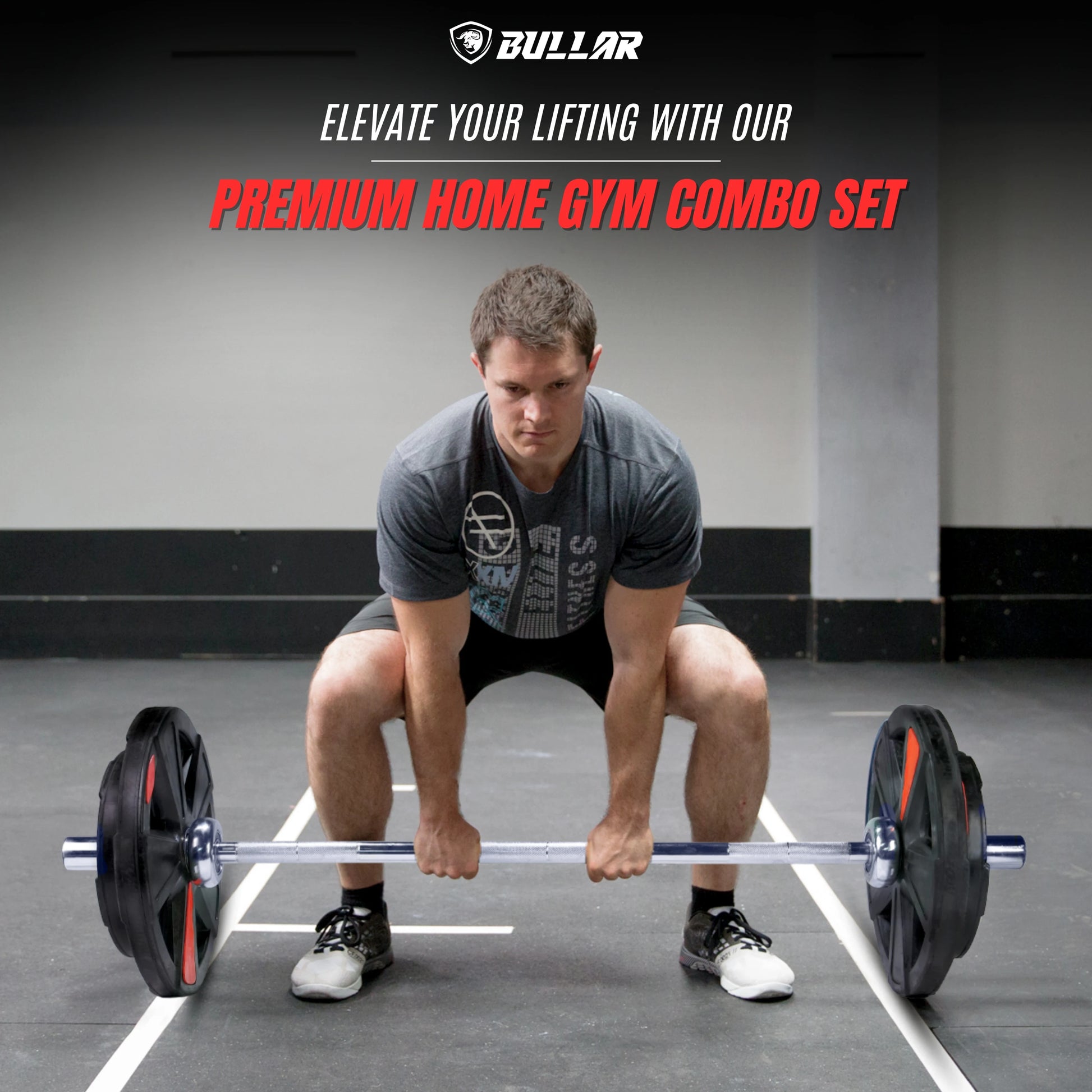 X-Cut Rubber Integrated Home Gym Set with 7ft Olympic Barbell